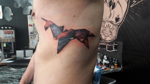 可爱独角兽纹身图案 男生侧腰上彩色的独角兽纹身图片