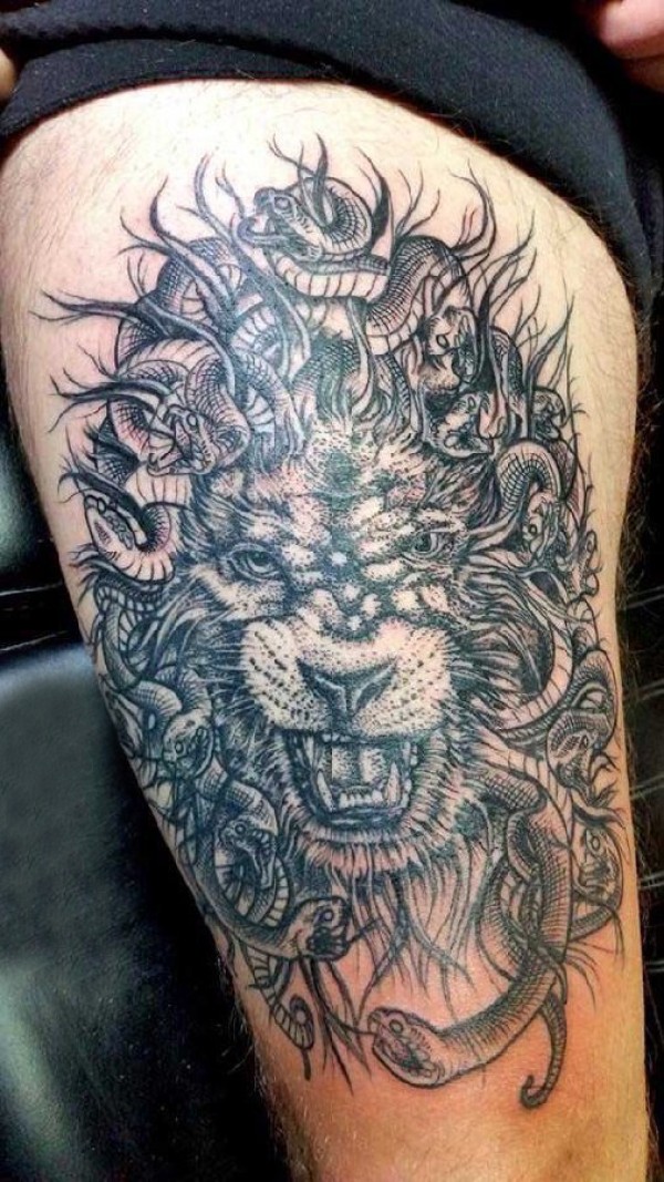 狮子头纹身图片 女生大腿上狮子头纹身图片