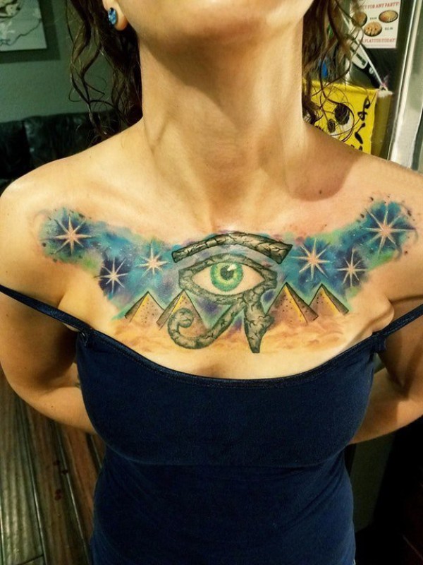 纹身锁骨女 女生锁骨上彩色的眼睛纹身图片