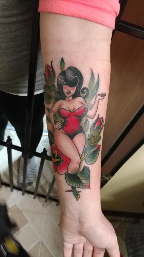 人物肖像纹身 女生手臂上人物肖像纹身彩色图案