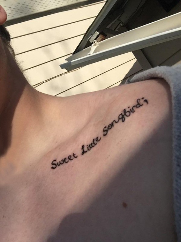 纹身锁骨女 女生锁骨上黑色的英文纹身图片