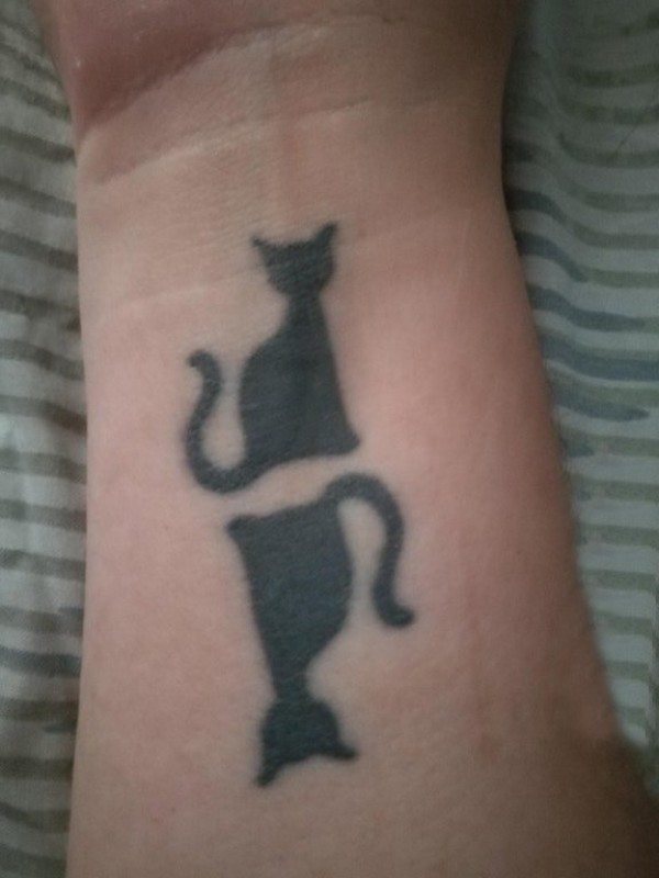 纹身手腕宠物 女生手腕上黑色的猫咪纹身图片