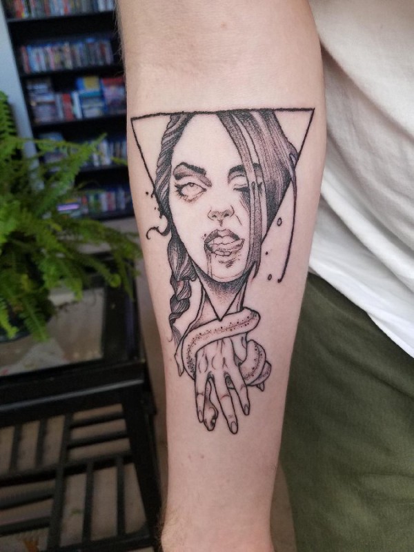 纹身手臂女生 女生手臂上三角形和人物肖像纹身图片