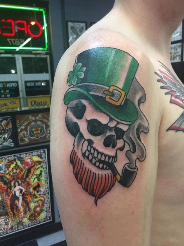 纹身骷髅头 男生手臂上彩绘纹身骷髅头图案