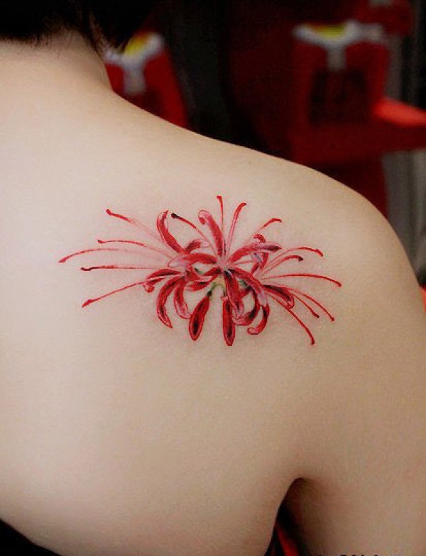 女生肩花纹身_15张女性双肩对称的肩花纹身图案作品图片