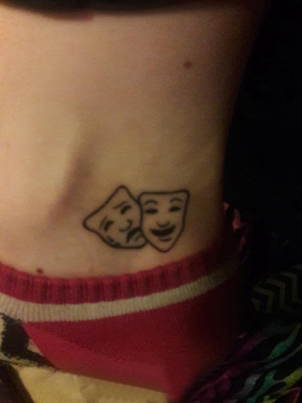纹身小丑面具 男生脚踝上黑色的面具纹身图片