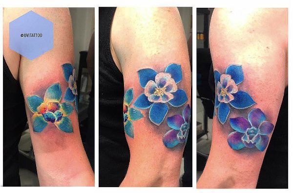 兰花纹身男 男生手臂上彩色的兰花纹身图片