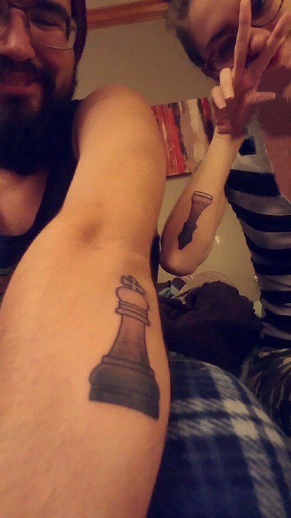 情侣小清新纹身 情侣手臂上黑色的棋子纹身图片