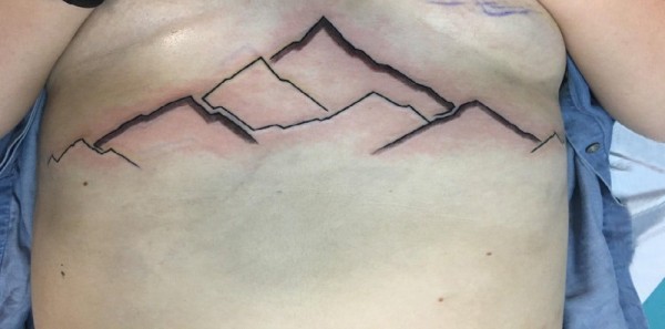 女生胸下纹身 女生胸部黑色的山脉纹身图片
