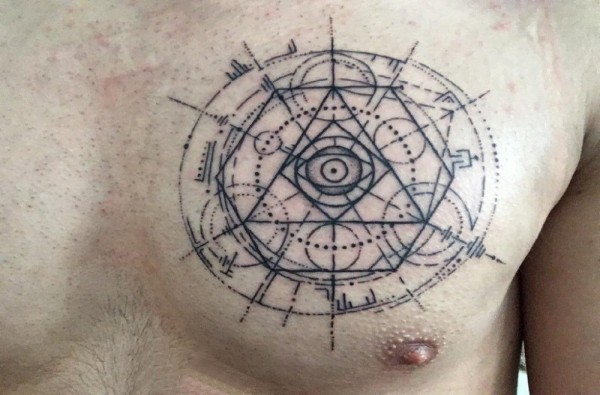 纹身胸部男 男生胸部黑色的几何纹身图片