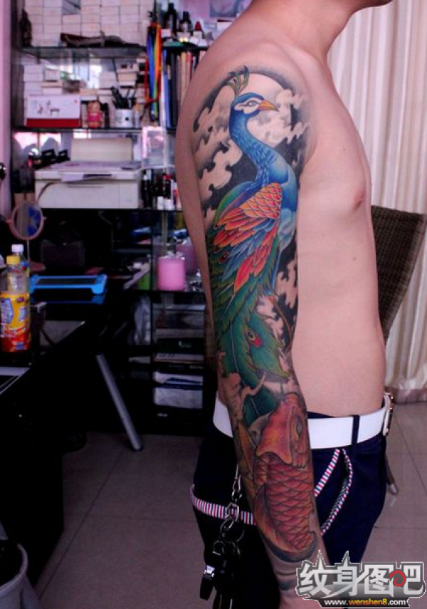 孔雀花臂纹身,胳膊孔雀纹身,周浦纹身店,周浦最好的纹身店,远航纹身