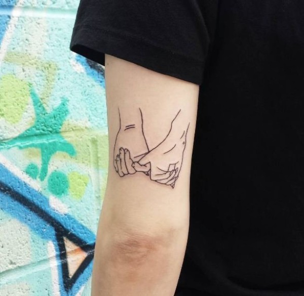 极简线条纹身 女生手臂上黑色的手纹身图片