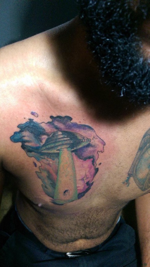 纹身胸部男 男生胸部彩色的飞碟纹身图片