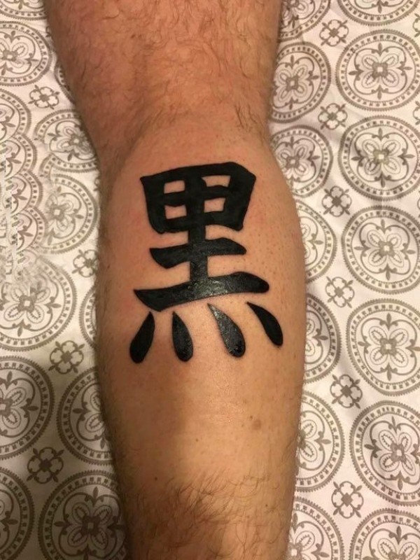 纹身文字图案 男生小腿上黑色的文字纹身图片