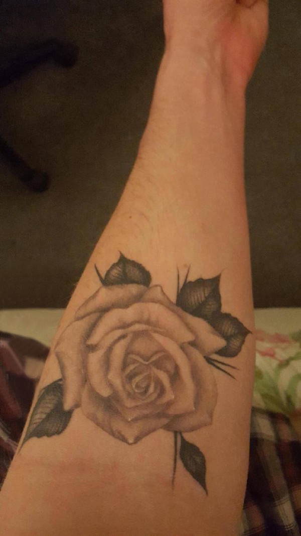 欧美玫瑰纹身 女生手臂上欧美玫瑰纹身素描图片