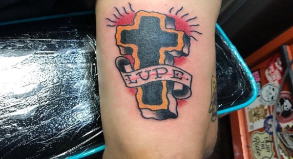 纹身小十字架 男生手臂上英文和十字架纹身图片