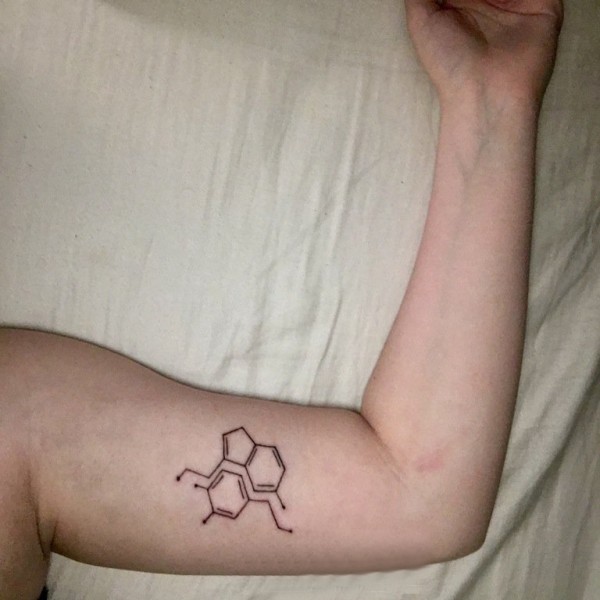 化学元素纹身 男生大臂上黑色的化学元素纹身图片