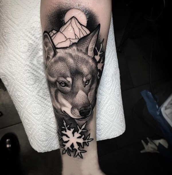 狐狸纹身图片 男生手臂上雪花和狐狸纹身图片
