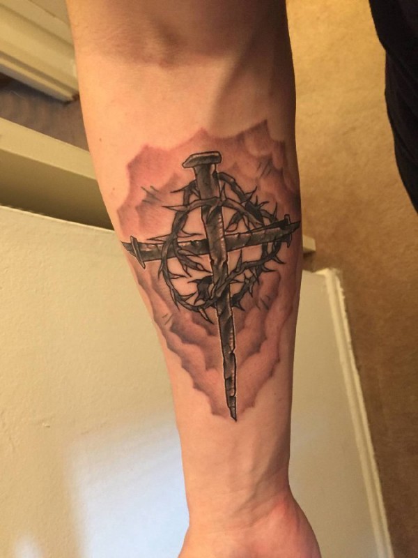 简单十字架纹身 男生手臂上黑色的十字架纹身图片