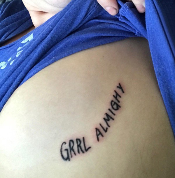 花体英文纹身 男生侧肋上花体英文纹身图片