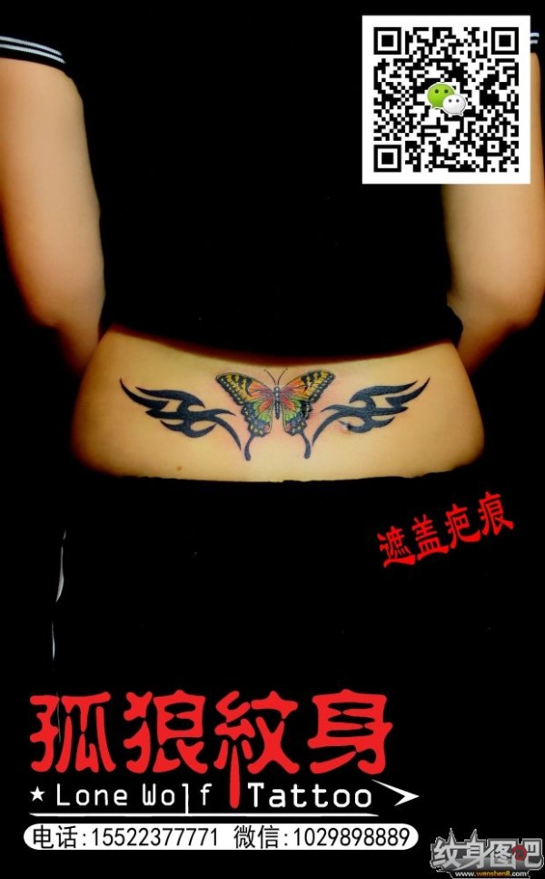 宝坻纹身 美女蝴蝶腰花纹身 孤狼纹身工作室作品 天津