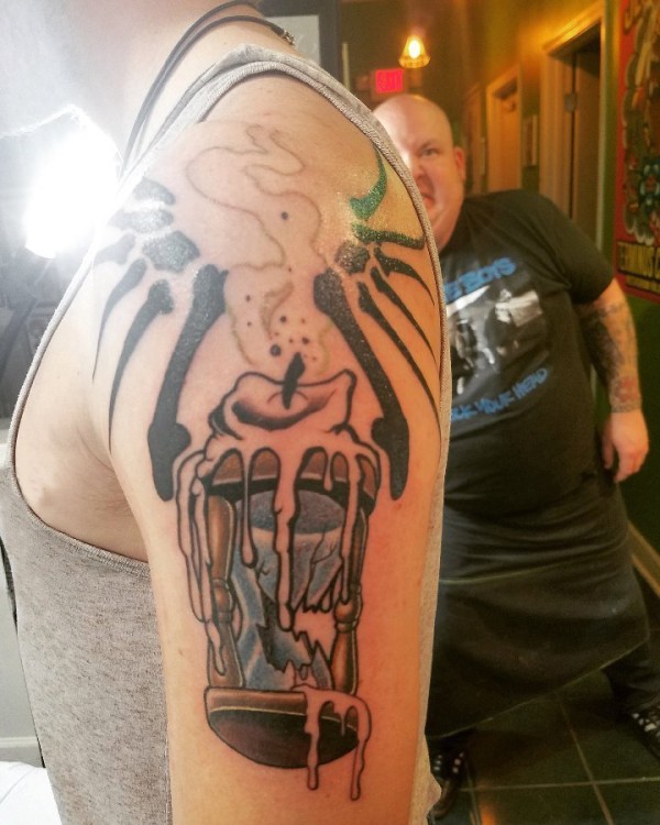 大臂纹身图 男生大臂上彩色的蜡烛纹身图片
