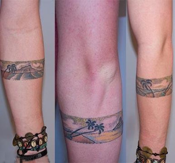 臂环纹身女 女生手臂上彩色的风景臂环纹身图片