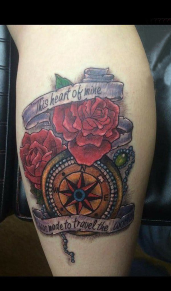文艺花朵纹身 女生小腿上文艺花朵纹身指南针图片