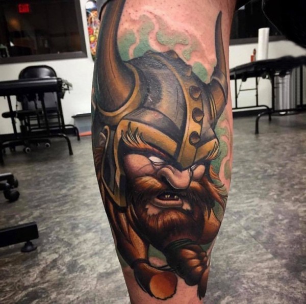 武士纹身 男生小腿上彩色的武士纹身图片