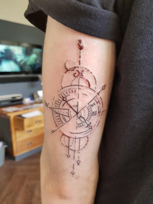 纹身指南针 男生手臂上黑色的指南针纹身图片