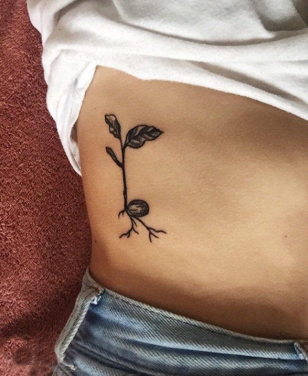 纹身叶子图案 女生腰部黑色纹身叶子图案