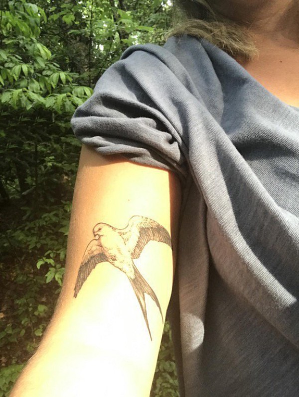 纹身燕子 女生手臂上黑色的燕子纹身图片