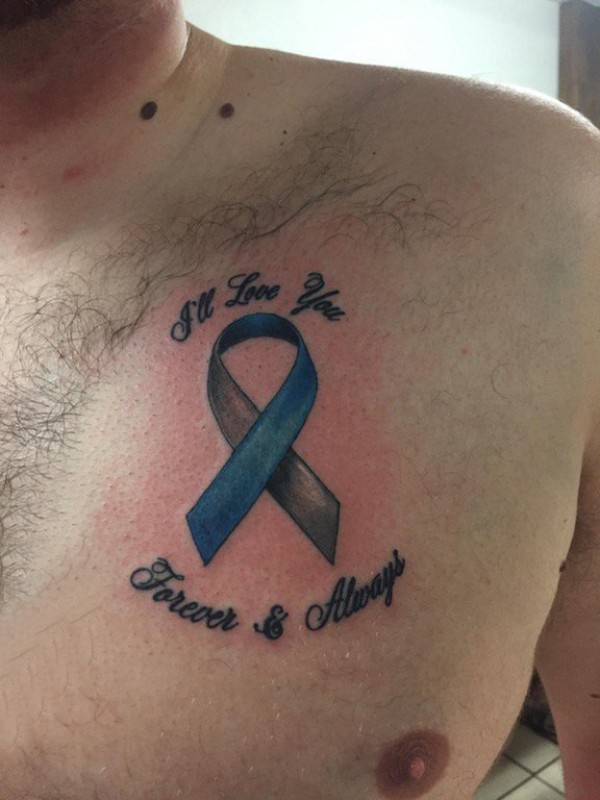 纹身胸部男 男生胸部英文和丝带纹身图片