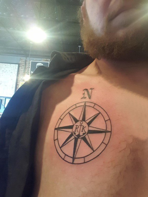 纹身胸部男 男生胸部黑色的指南针纹身图片