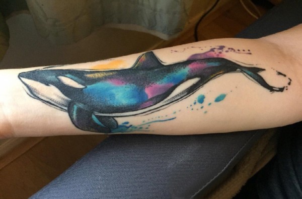 纹身鲸鱼 男生手臂上鲸鱼纹身图案