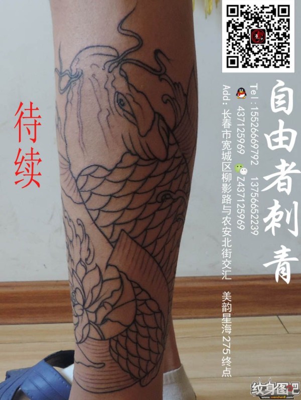 传统鲤鱼花小腿纹身_腿部纹身图案大全_纹身图吧