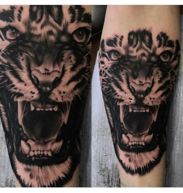 老虎图腾纹身 男生手臂上老虎头纹身图案
