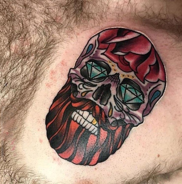 纹身骷髅头 男生胸部彩绘纹身骷髅纹身图片
