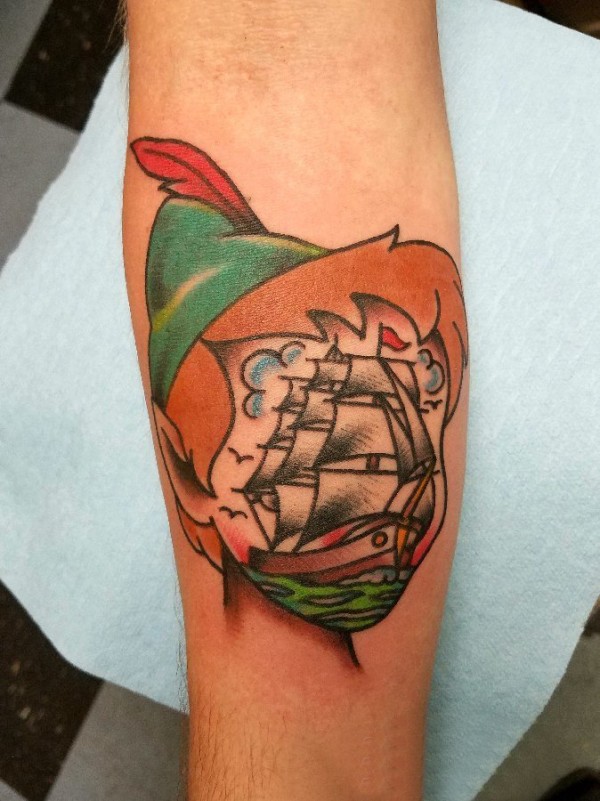 纹身小帆船 男生手臂上彩绘纹身帆船纹身图片