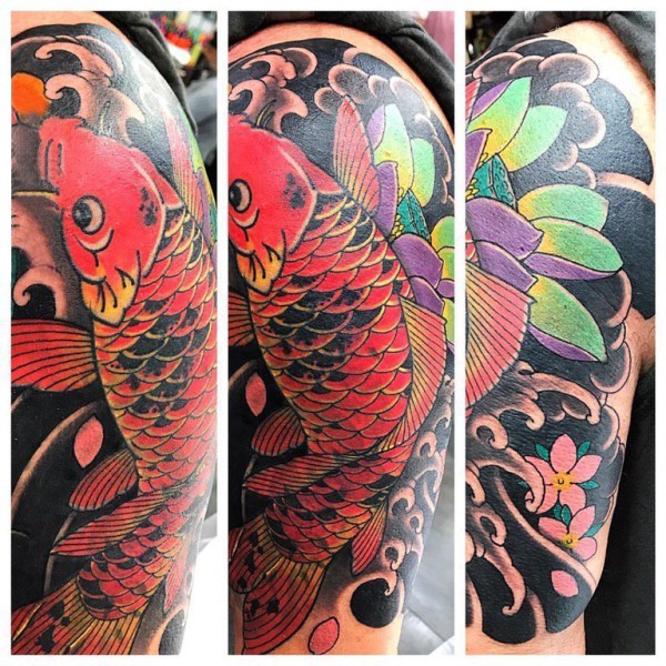 纹身红鲤鱼 男生手臂上鲤鱼纹身图片
