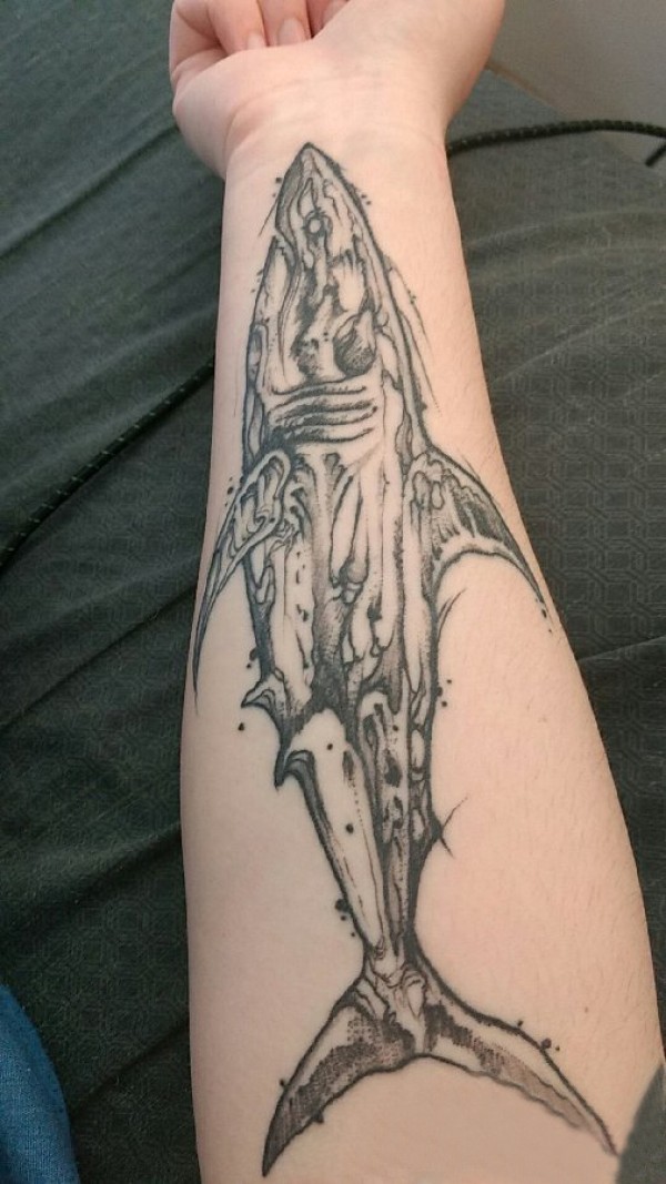 鲨鱼纹身图 男生手臂上鲨鱼纹身图案
