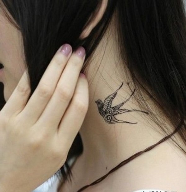 后颈部纹身小图--9张女生脖子后颈处的简约纹身图案