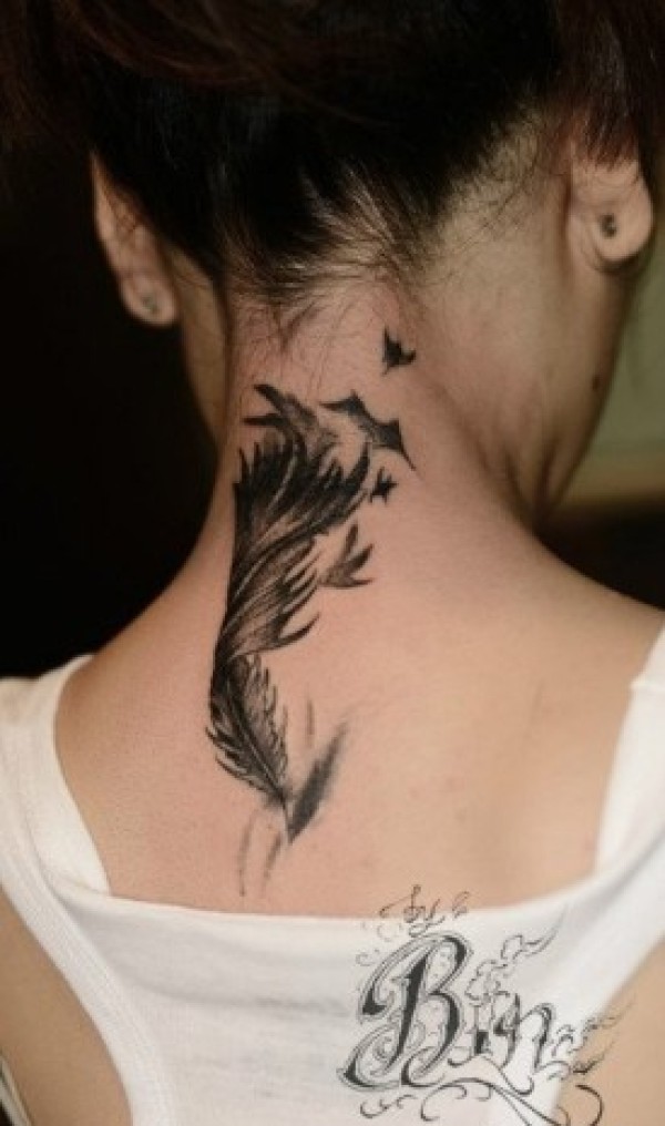 后颈部纹身小图--9张女生脖子后颈处的简约纹身图案