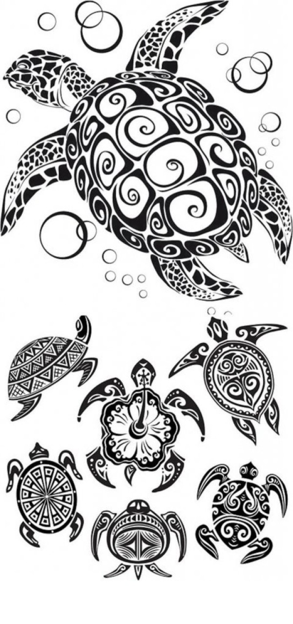 多款线条素描文艺可爱有趣海龟动物纹身手稿