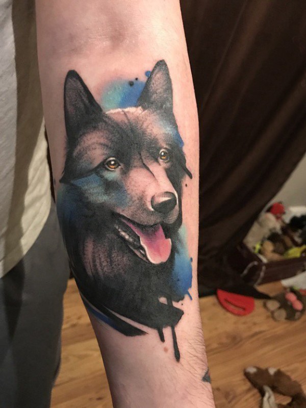 小狗纹身图片 女生手臂上动物纹身小狗纹身图片