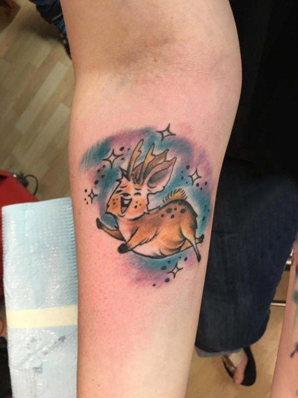 小动物纹身 女生手臂上彩色的鹿纹身图片
