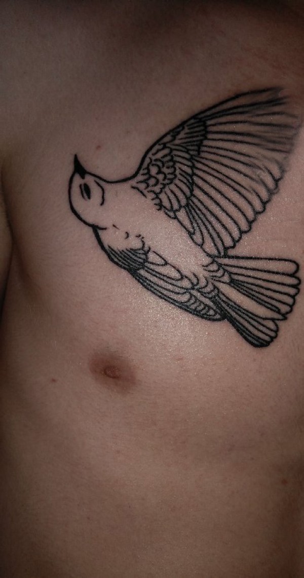 小动物纹身 男生胸部黑色的鸟纹身图片