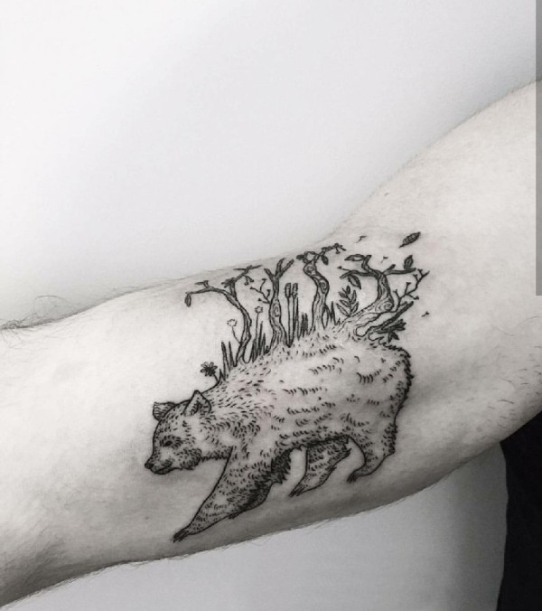 小动物纹身 男生手臂上黑色的熊纹身图片