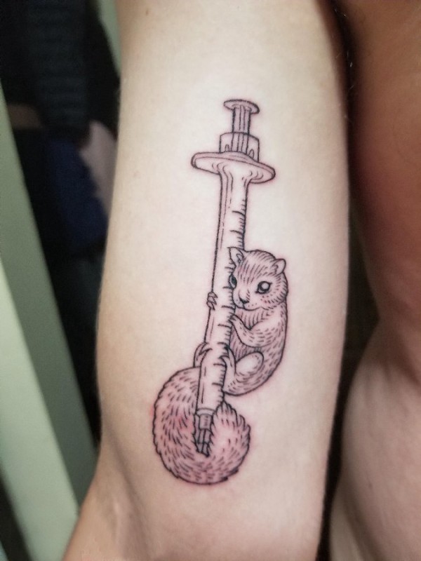 小动物纹身 男生手臂上黑色的松鼠纹身图片