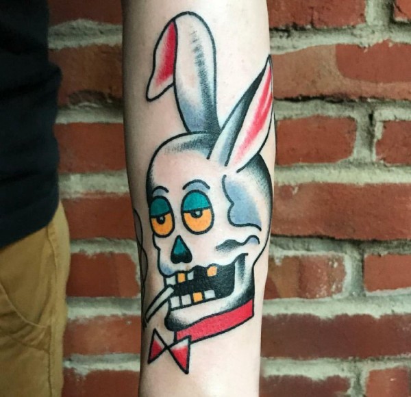 小动物纹身 男生手臂上彩色的兔子纹身图片